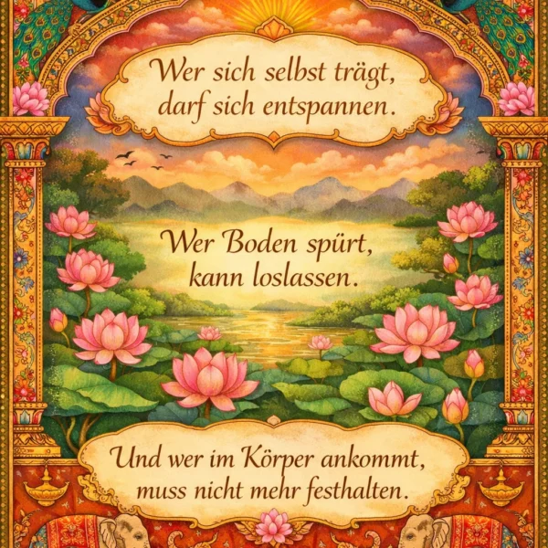 Muladhara reguliert genau diese Schwelle zwischen Halten und Nachgeben. Es sorgt nicht für Bewegung, sondern für Verlässlichkeit. Erst wenn diese Verlässlichkeit spürbar ist, kann sich die Spannung lösen.
